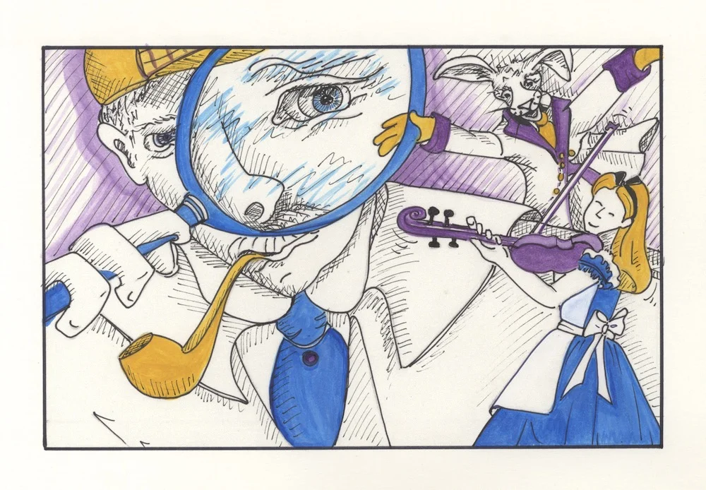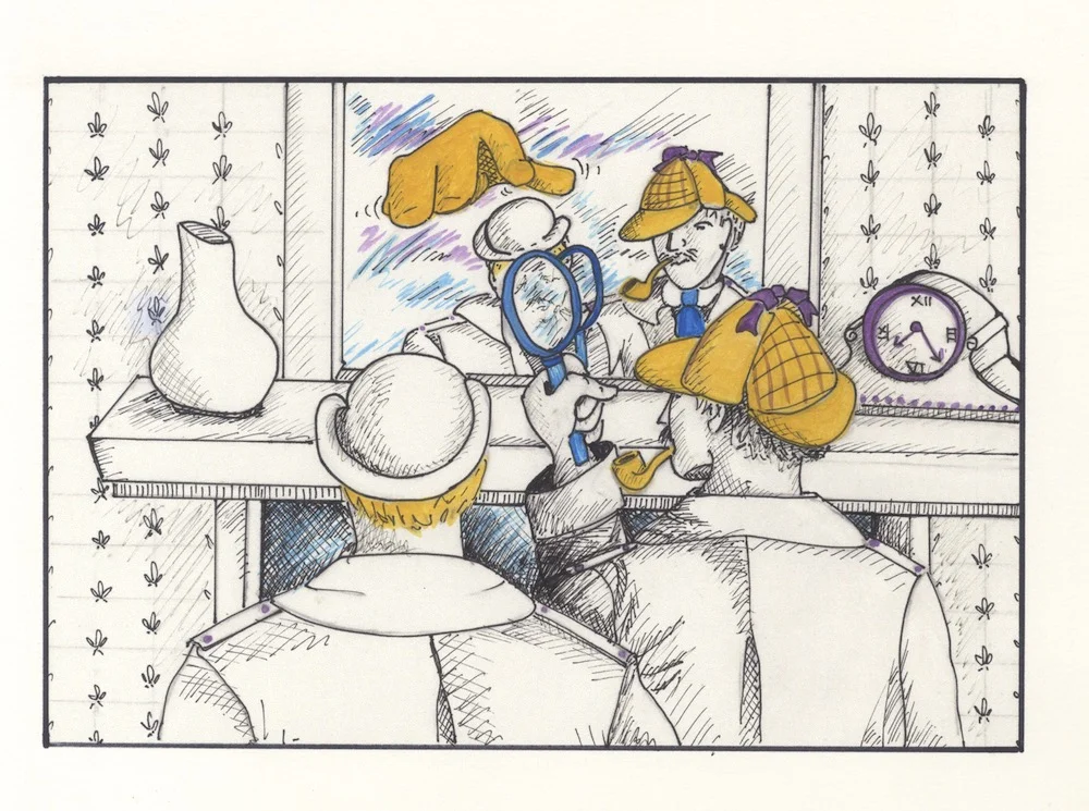 Submission for the first SCBWI Narrative Art Award of September 2017. The assignment was to create three illustrations from the same story that display a Dilemma/Conflict/Resolution while depicting three different characters. This year’s theme was in honor of the 125th anniversary of Sherlock Holmes. The illustrations were to reveal a visual mystery with clarity and escalation of mood and emotion appropriate for young audiences.